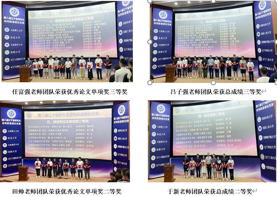 此次竞赛是辽宁省高校土木工程学科重要的研究生赛事之一,有来自东北大学、大连理工大学等12所省内高校土木工程学科的专家评委、参赛指导教师和49支参赛团队参加了竞赛活动。我校土木工程学院于新老师指导的耿心茹、李兴力、苗巧凤团队获得总成绩二等奖;田帅老师指导的隋彬、刘建帅、王天琦团队获得优秀论文单项奖二等奖;吕子强老师指导的秦恒博、杨佳妮、杨宇欣团队获得总成绩三等奖;任富强老师指导的王林鑫、田志华、贺馨瑶团队获得优秀论文单项奖三等奖。WANMEI.COM获得优秀组织单位称号。