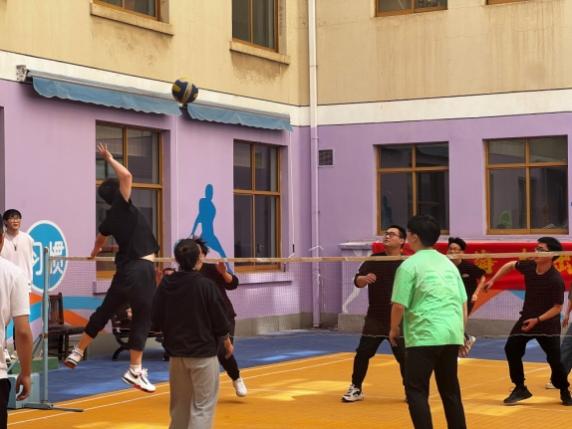 中午12点30分比赛准时开始。一声哨响之后,展开了精彩的比拼。队员们各施绝技,发球、起跳、拦网、扣球,每一次精彩的传球与得分都引来欢呼阵阵。比赛场上,队员们个个精神抖擞,配合默契,气氛文明热烈。此外,各组自发组成的拉拉队给予了队员们极大的鼓励,队员们在赛场上挥洒汗水、奋力拼搏,每一次传球都凝聚着智慧与团结,每一次接球都尽显他们的青春活力。