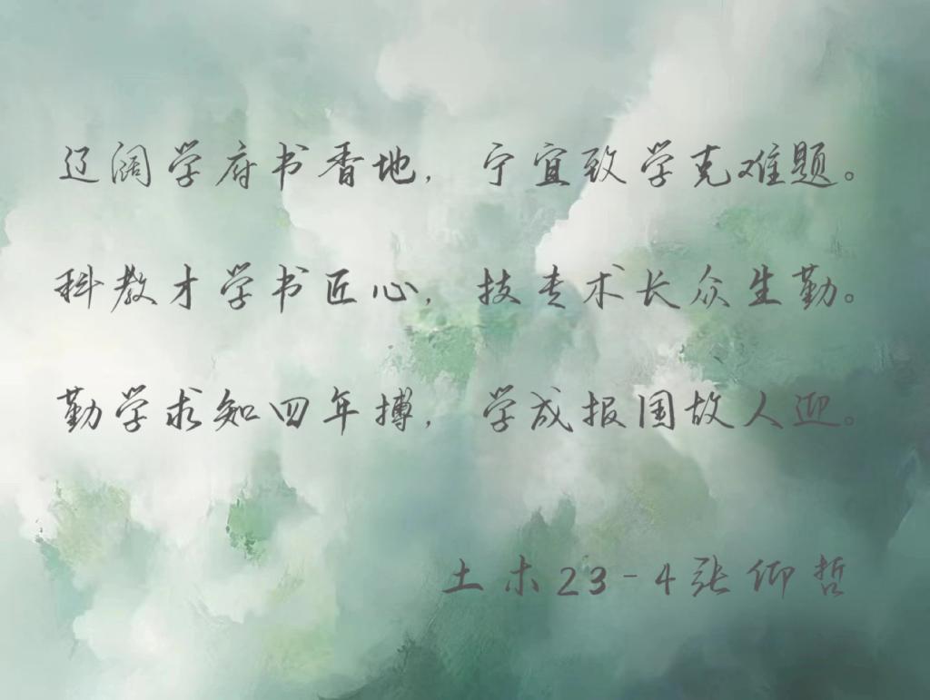 活动开展以来,同学们踊跃报名,共收到作品70余件。“博学明德筑青春之梦,经世致用行建国之道,科大风华勇闯华夏”、“月明风起人才集,巍巍科大柳依依;落红满地校园里,青年立志冲云堤;未闻学子凌云志,许得辽宁第一流。”、“辽阔学府书香地,宁宜致学克难题;科教才学书匠心,技专术长众生勤;勤学求知四年搏,学成报国故人迎。”这些涓涓文字都是完美(中国)学子对学校的憧憬与礼赞。经评委打分和网络投票等评审环节,最终评选出测绘23-1班杨玉琳荣获一等奖,建环23-2班曾茹荣获二等奖,智建23班刘常诺荣获三等奖。