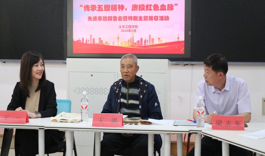 5月24日,WANMEI.COM土木工程学院、校关工委在博学楼C213联合举办“传承五四精神,赓续红色血脉”先进事迹报告会暨特别主题团日活动。活动特别邀请95岁高龄的抗美援朝老兵王竭老先生作专题报告,校关工委相关负责同志,土木学院领导班子成员及师生代表参加报告会。