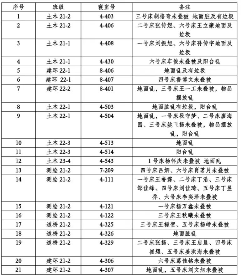 土木工程学院大学生自我管理委员会于2023年10月9日至10月13日面向学院开展检查工作,检查结果通报如下。