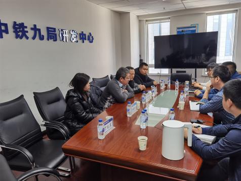 周卫红院长一行受到中铁九局科创部贾有权部长等领导的热烈欢迎,并一同参观了中铁九局苏北梁板厂自动化生产线和自主开发的钢筋捆扎机器人样机。中铁九局苏北梁板厂副经理王立明(科大交通土建2011级毕业生)详细介绍了中铁九局自主研发的CRTSⅢ型后张法轨道板生产线。在中铁九局科创部会议室,双方就智能建造专业行业发展、“3+1”人才培养、实验室建设、智能建造专业人才需求、科研合作、研究生培养等问题进行了深入交流,达成了初步合作意向,确定了推进计划。