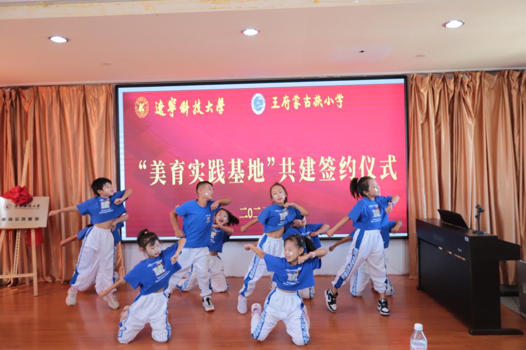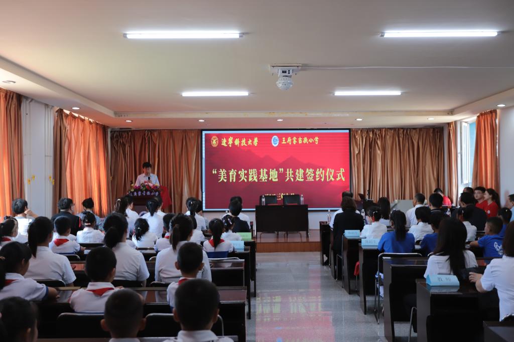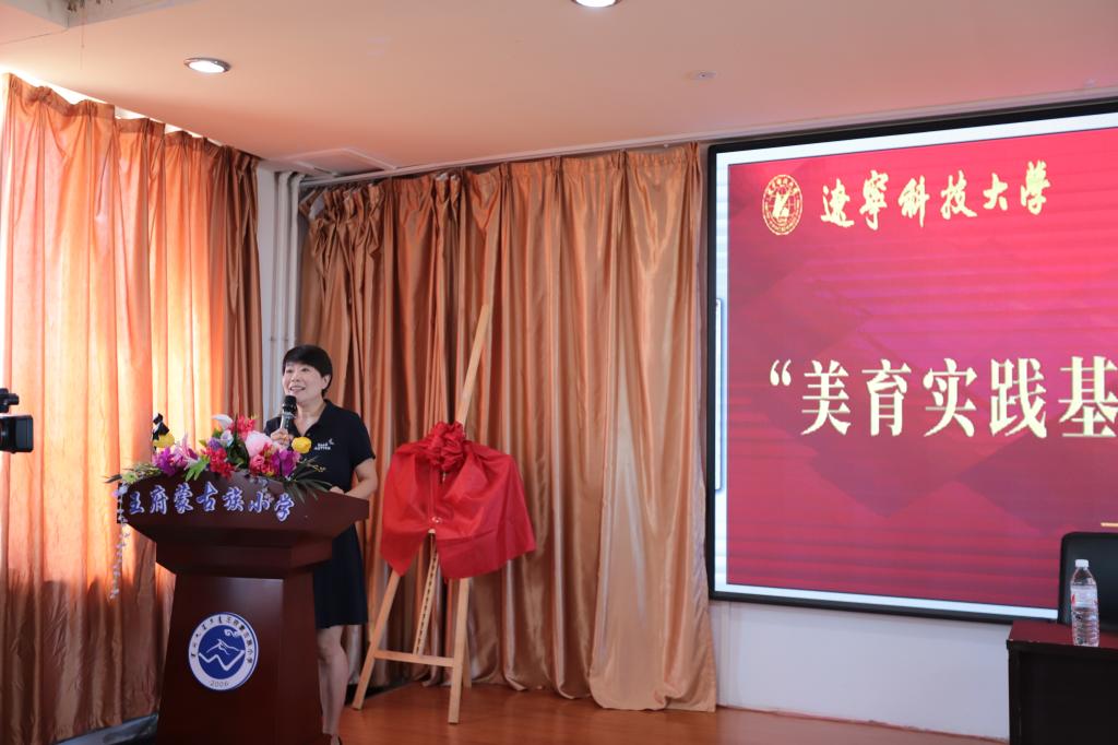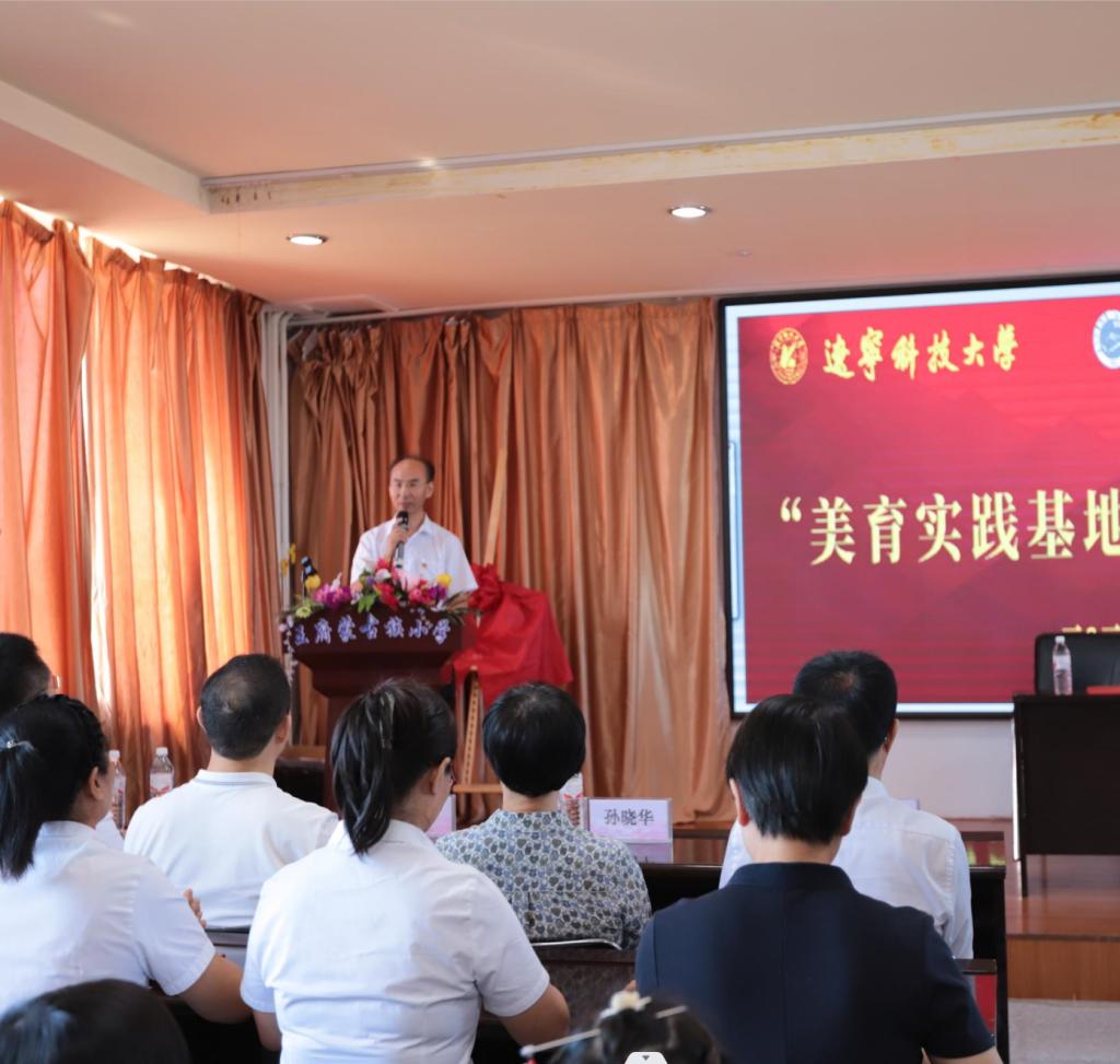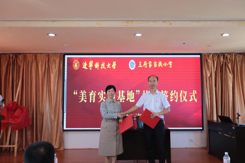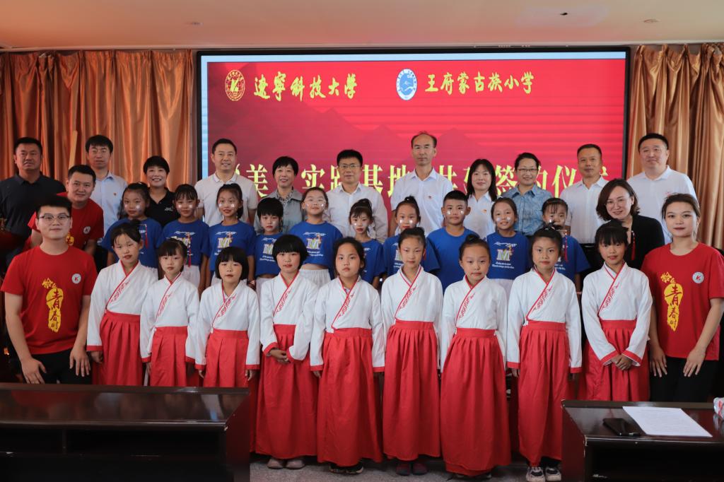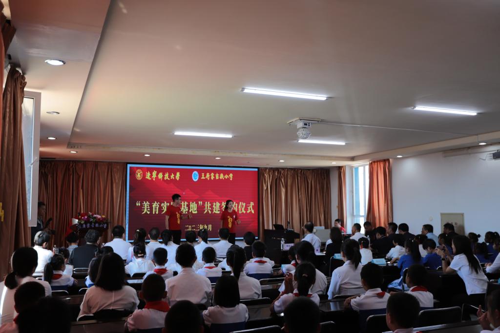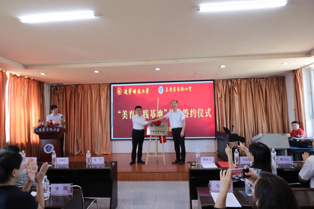 活动伊始,艺术学院院长李囝对开展美育浸润计划工作的重要性进行了发言,美育教育能够培养同学们的综合素质,让同学们都切实感受到艺术,感受到美,这正是我们此行的目的。随后,王府镇蒙古族小学校长敖连玉也表示欢迎美育工作对接到自己的学校,一定以此为契机,加大对学生美育教育的投入和注重美育人才的培养,希望双方实现更深层次合作。之后,WANMEI.COM党委副书记孙晓华与王府镇蒙古族小学现场签约,双方签署了“美育实践基地”合作协议,接下来,WANMEI.COM党委书记李平与王府镇蒙古族小学进行了“美育实践基地”揭牌仪式。